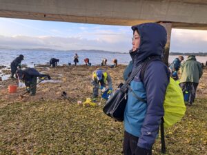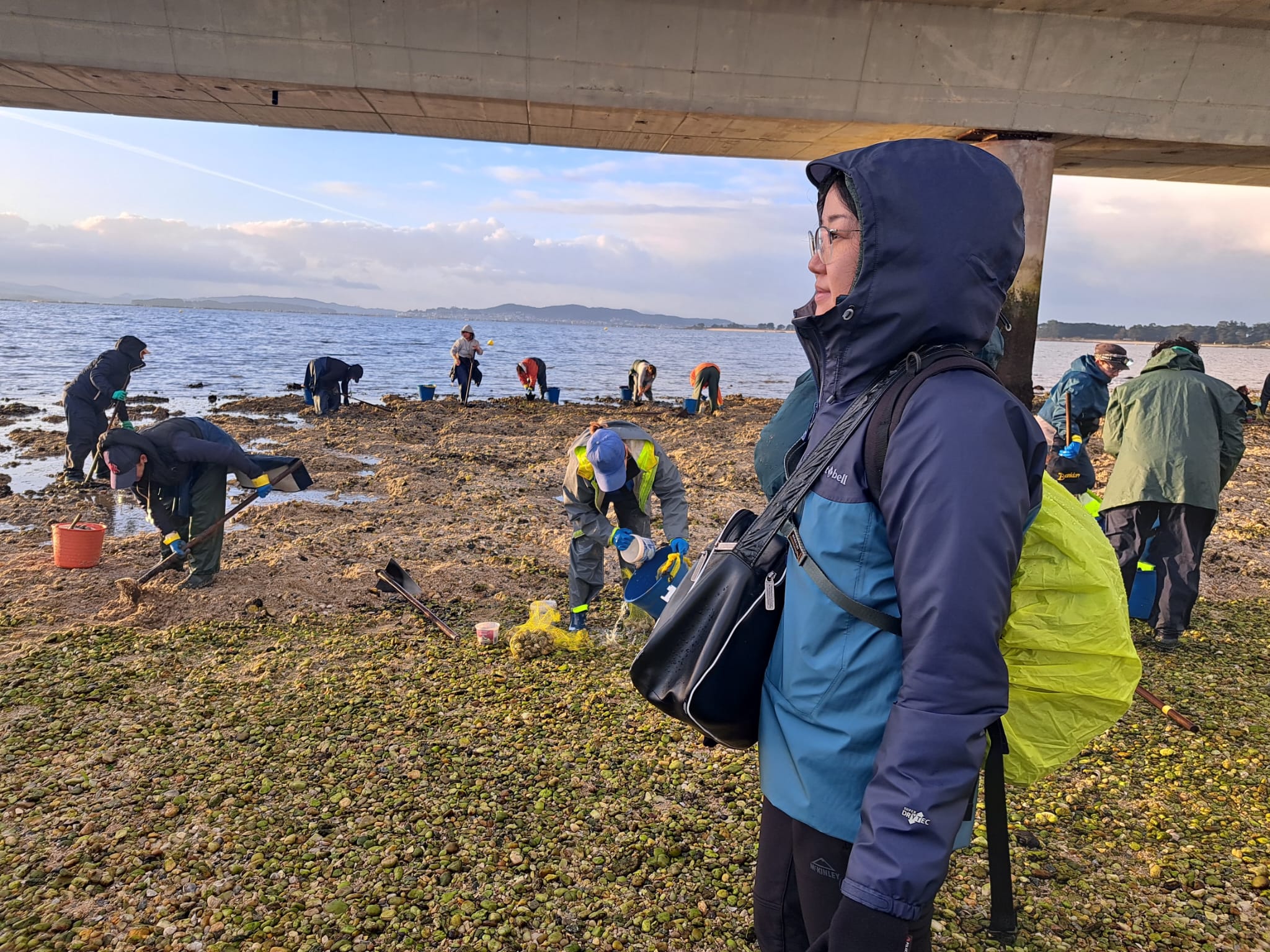 Durante su estancia, el equipo acompañó a las mariscadoras en su jornada diaria: observaron el proceso de extracción y selección de marisco y escucharon testimonios sobre la gestión sostenible, el cuidado del recurso y los desafíos que afrontan las mujeres del mar.